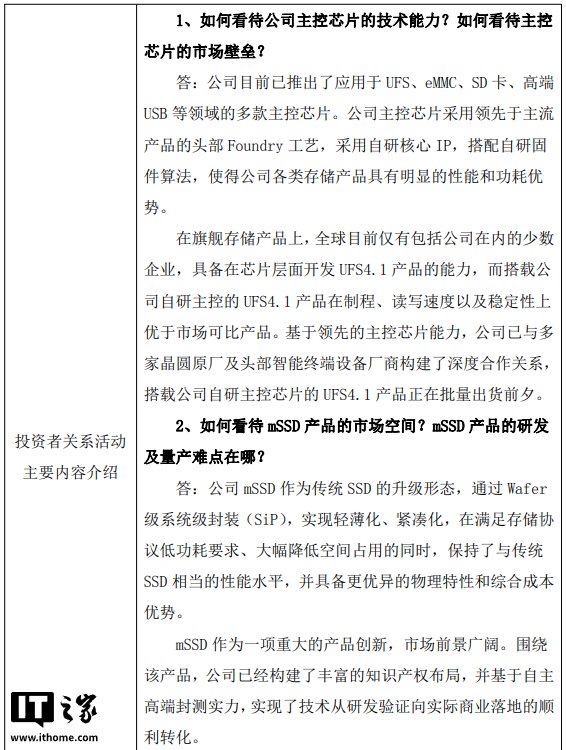 IT之家 3 月 7 日消息,江波龙 3 月 4 日发布的最新投资者文件披露了公司在主控芯片研发、创新产品落地及供应链布局等方面的最新进展。