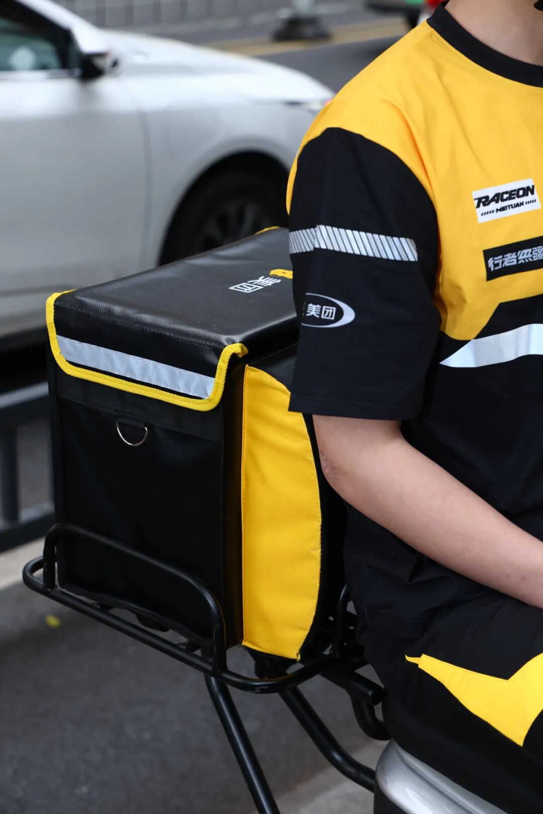 深圳的骑手穿上崭新的速干骑手服,直言“比以前透气多了”,这背后是户外级永久速干面料的加持,吸湿排汗速度比普通棉质快 3 倍以上,长时间骑行也能保持身体干爽,不粘身、不闷汗。
