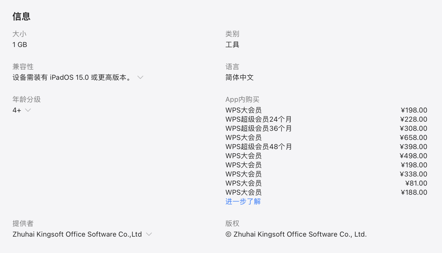 不过需要注意的是,WPS for Pad 仍然提供会员内购项目,例如大会员 24 个月售价 228 元、36 个月售 308 元以此类推。