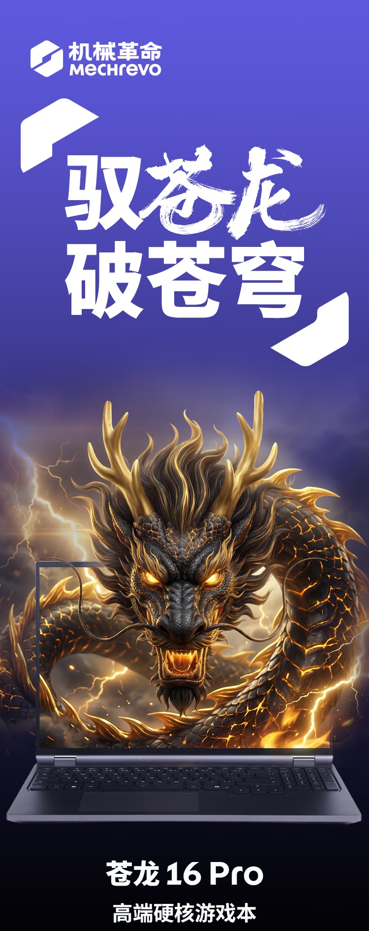 机械革命苍龙 16 Pro 采用了 ACD 全金属机身、无限镜 Logo、冰霜散热架构(2 风扇 +4 出风口 +4 散热鳍片 +5 热管 + 高分子相变硅脂),厚 21mm,重约 2.3kg,整机性能释放 200W(CPU 单烤 115W、GPU 单烤 115W),支持风扇无极曲线调节,静音模式下 43dB。