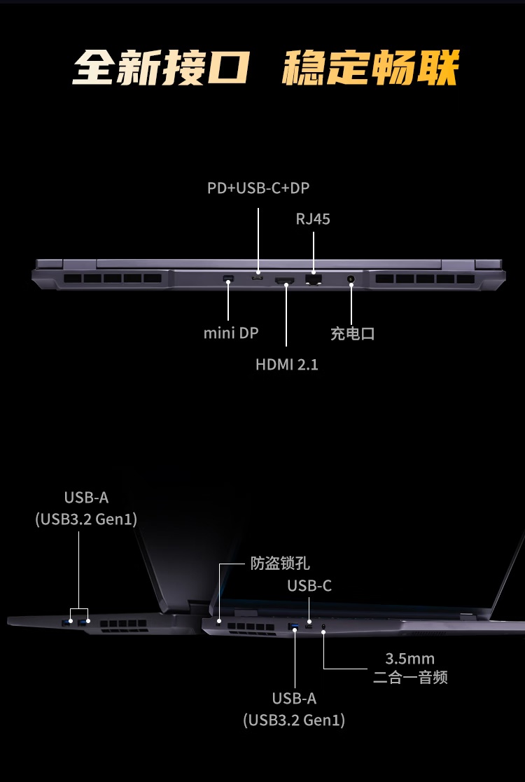 其他方面,这款机型支持 Nahimic 游戏调音认证,支持 140W 私有 PD 供电协议,支持 100W 标准 PD 充电协议,配备 250W SiC 适配器及 80Wh 3C 认证高密度电池,提供 USB-C、HDMI 2.1 等接口。