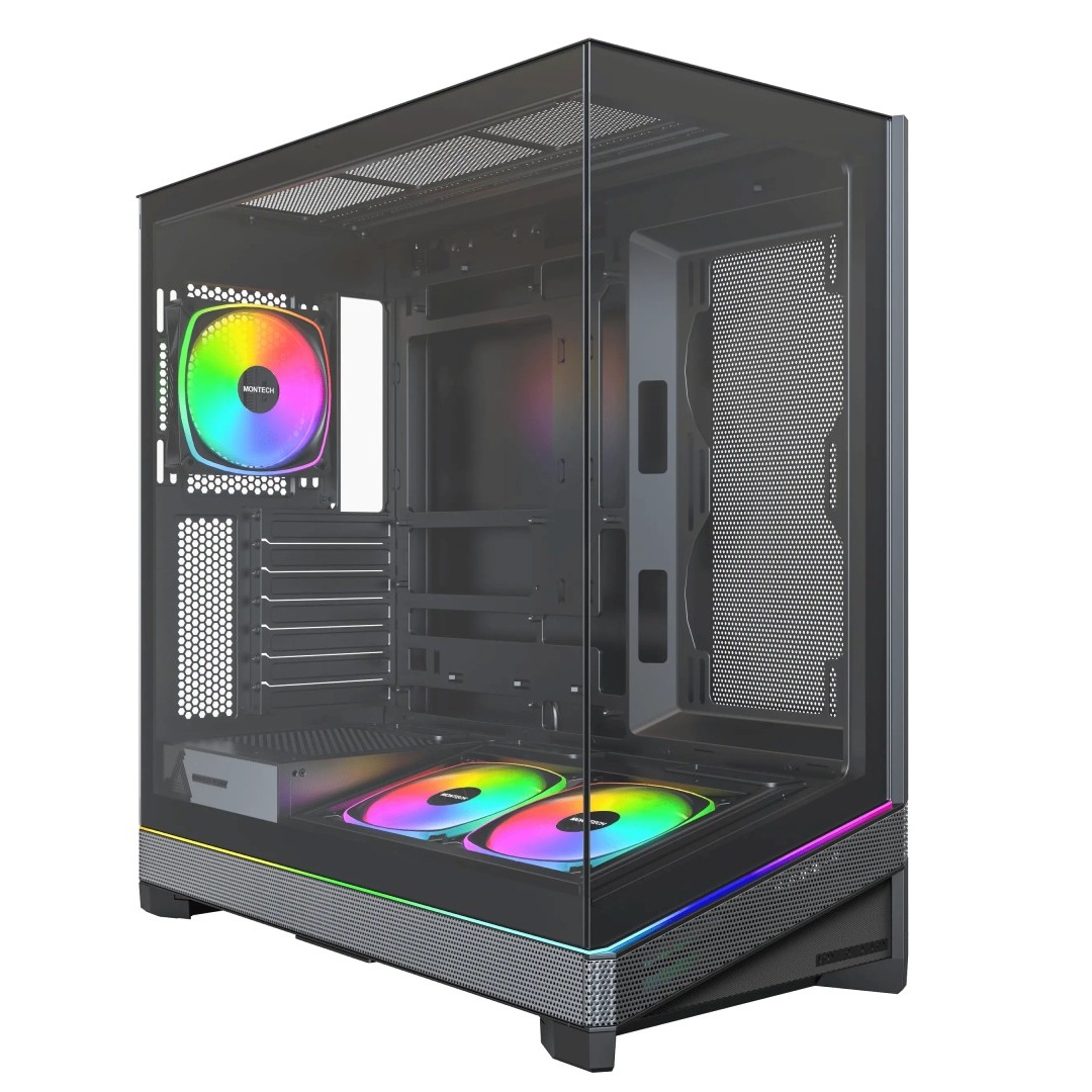 IT之家 3 月 10 日消息,MONTECH 君主科技昨日宣布推出 SKY 3 机箱。这款无左前柱全视海景房型号底部倾斜 13°,拥有贯穿前侧与左侧的底部 ARGB 灯带。