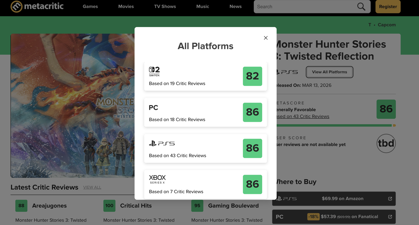 目前,本作媒体评分已解禁,游戏在 Metacritic 上 Switch 2 版本 82 分(19 家媒体)、PC 版 86 分(18 家媒体)、PS5 版 86 分(43 家媒体)、Xbox Series X 版 86 分(7 家媒体)。