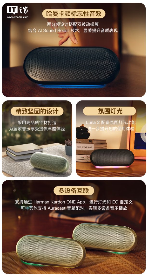 IT之家 3 月 10 日消息,哈曼卡顿现已在京东上架 LUNA 2 便携蓝牙音箱,定价为 1499 元。