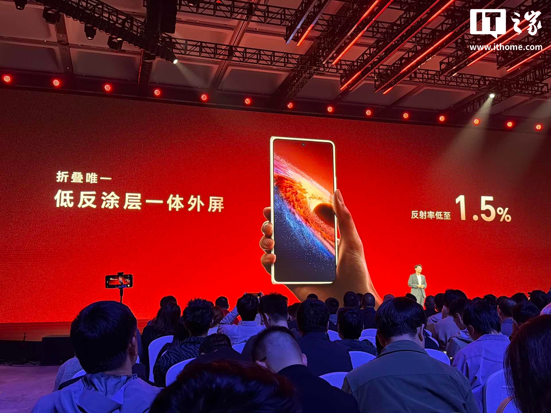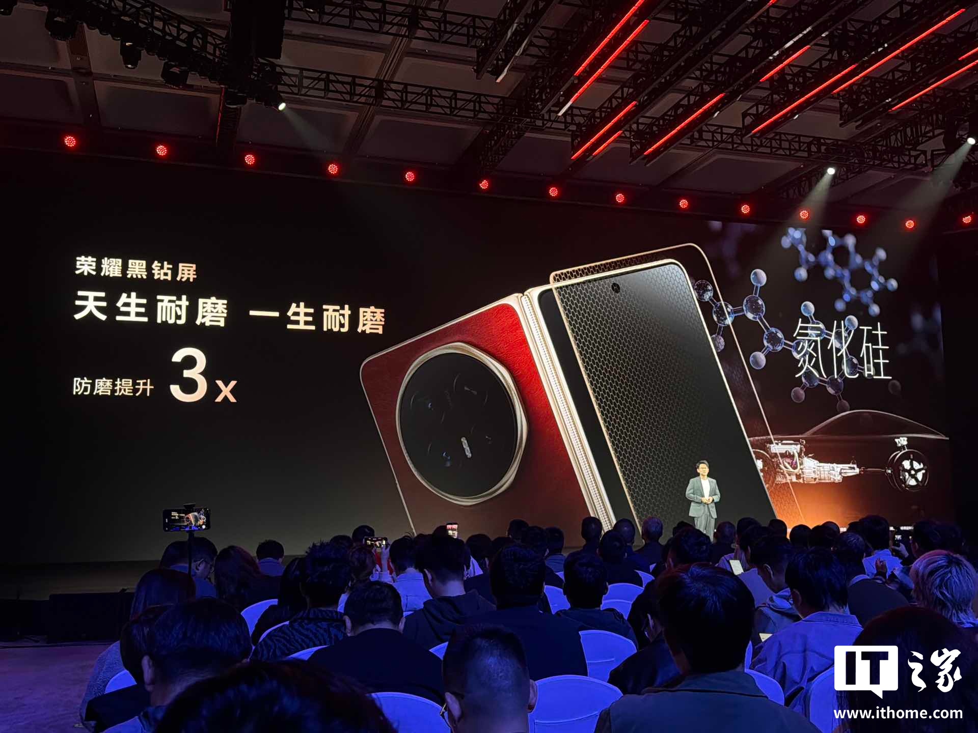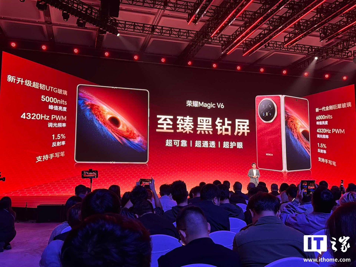 据介绍,荣耀 Magic V6 配备全新黑钻屏,主打超可靠、超通透、超护眼特性,每块屏幕镀有 5600 层氮化硅,防磨性能提升 3 倍;拥有折叠唯一低反涂层一体外屏,反射率低至 1.5%。