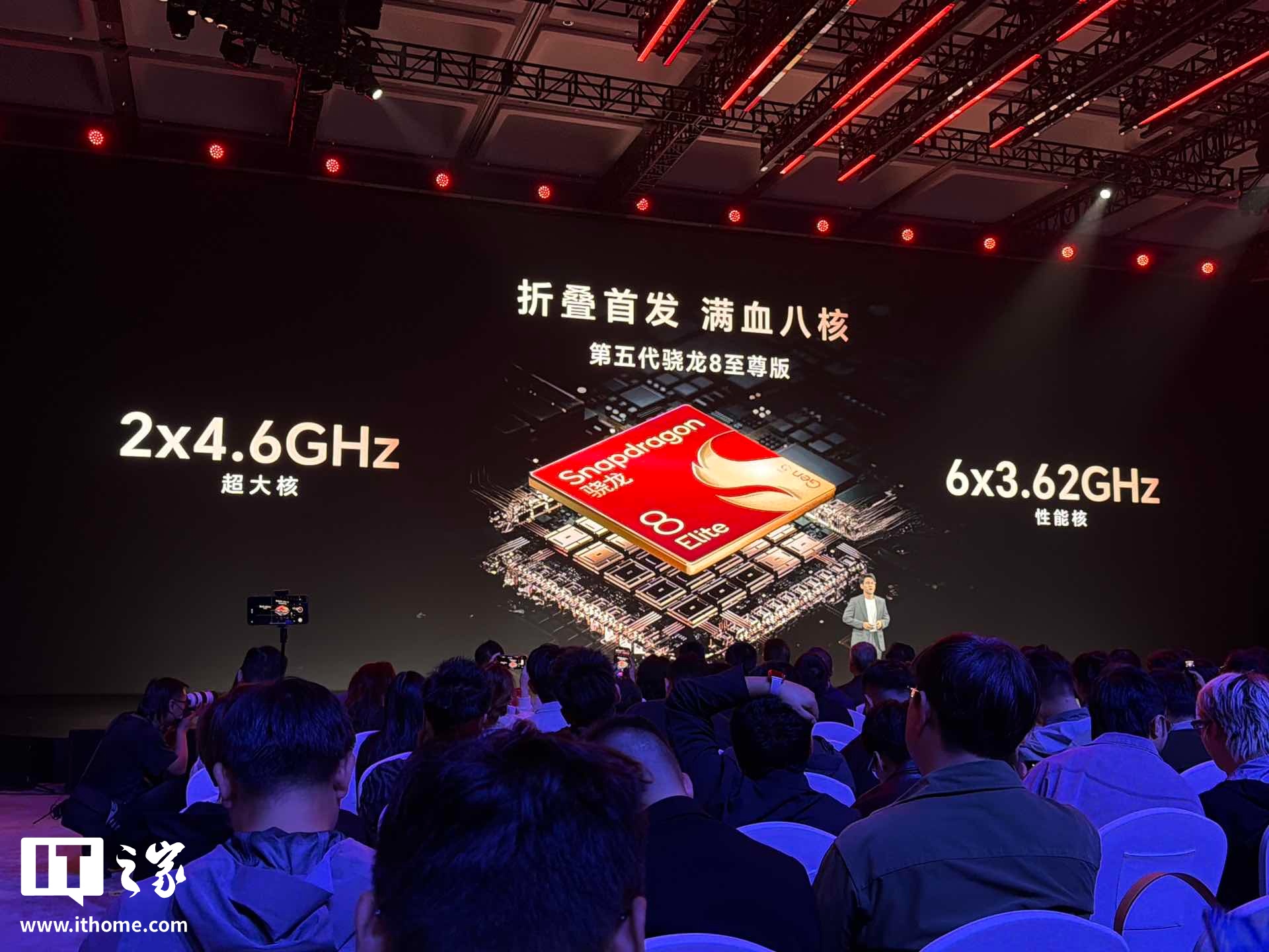 荣耀 Magic V6 还折叠首发满血八核第五代骁龙 8 至尊版处理器。
