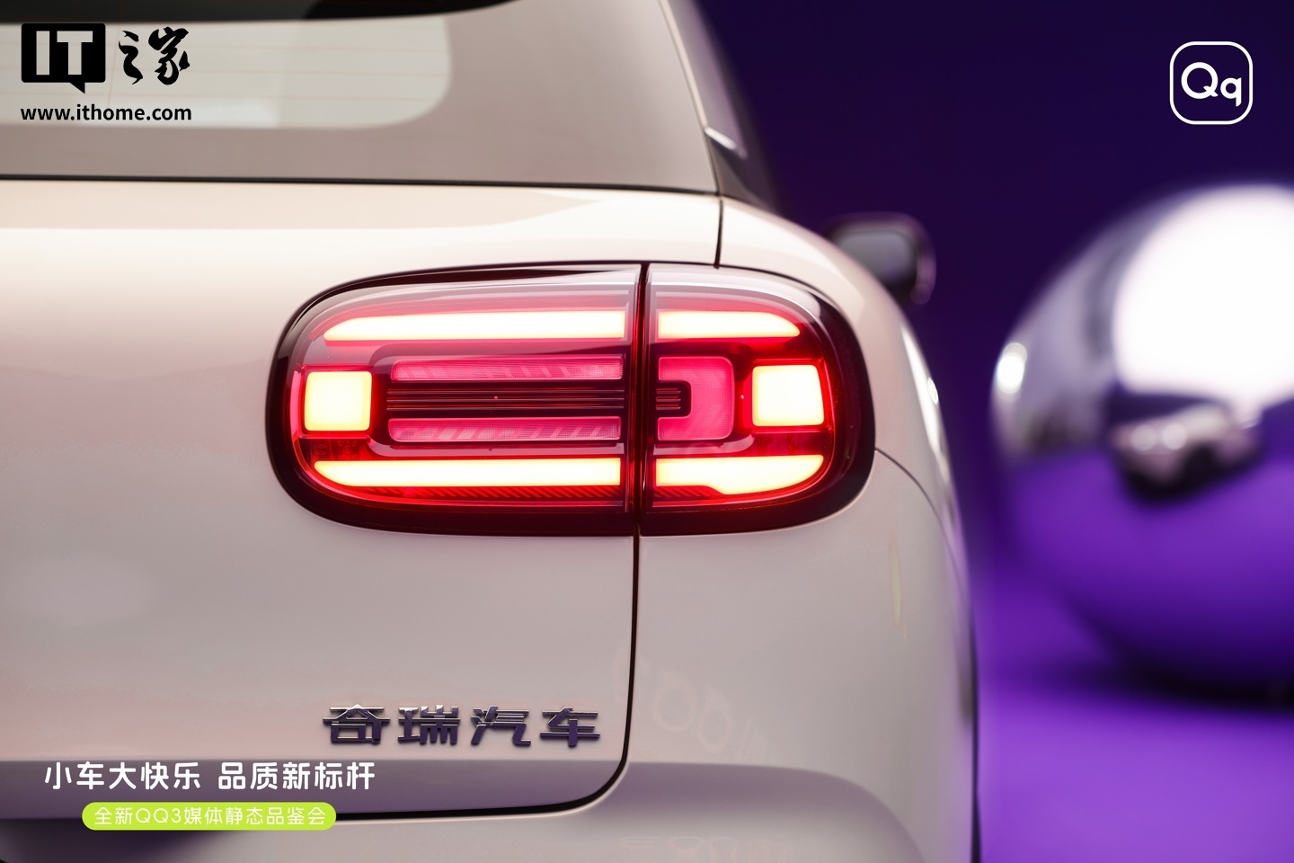 据IT之家了解,奇瑞 QQ3 EV 采用“智圆行方”的设计理念,整体造型圆润可爱。前脸配备封闭式格栅及 Q 型 LED 大灯,下方设有圆角贯穿式进气口,增添运动气息。车身侧面采用半隐藏式门把手设计,前后轮眉以黑色饰件点缀,配合 0.643 轴长比、2.39 轮高比及 3 倍轮轴比的车身比例,呈现出时尚的视觉效果。车尾同样采用圆润灯组设计,与前脸形成呼应。新车提供云粉米、翎羽白、月剑银、赤炎红、飘逸紫、桃夭粉六种车身颜色。