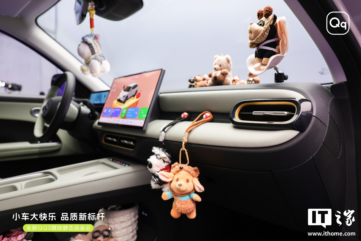 内饰方面,奇瑞 QQ3 EV 提供质感黑与丛林绿两种配色方案,整体设计简洁明快。智能化配置是该车的一大亮点,其搭载 AI 灵犀智舱,配备 15.6 英寸 2.5K 中控屏,内置高通骁龙 8155 芯片,并集成 Carmind 智能体,支持多场景“可见即可说”语音交互。车机系统采用全新 HMI 设计,具备快捷手势操作、个性壁纸、灵动岛及萌宠桌面等功能。
