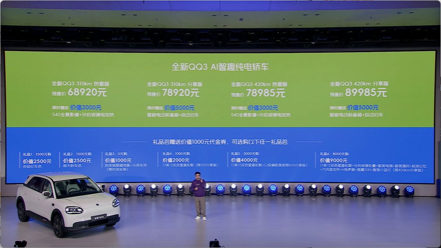 IT之家 3 月 10 日消息,今晚奇瑞汽车旗下全新纯电小型车 —— 全新奇瑞 QQ3 EV 正式开启预售。新车共推出 4 款配置车型,预售价区间为 6.8920-8.9985 万元。