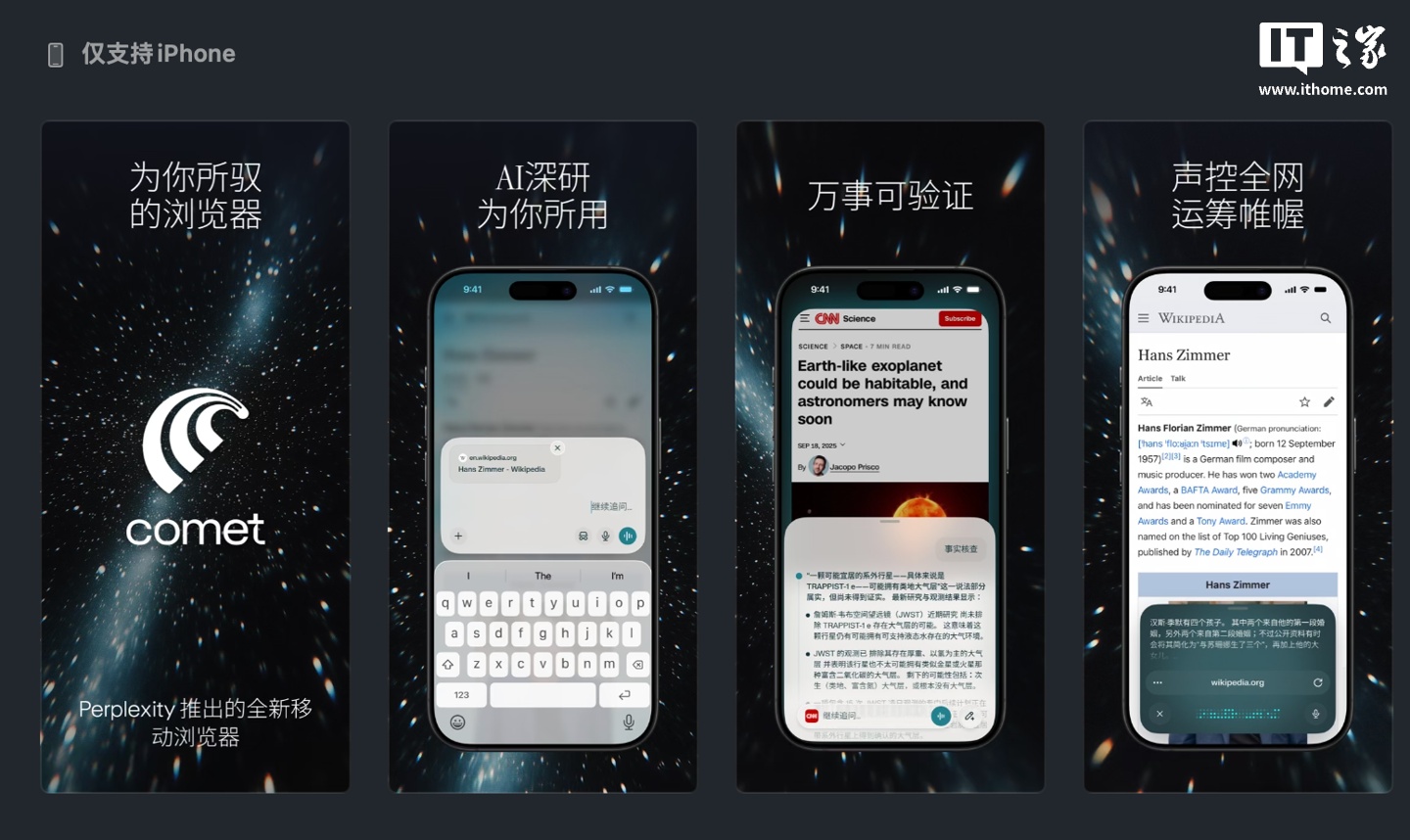 IT之家 3 月 10 日消息,Perplexity Comet 浏览器苹果 iOS 版现已正式上线,目前只支持 iPhone,需要 iOS 18.0 或 visionOS 2.0 或更高版本系统,可在国区下载。
