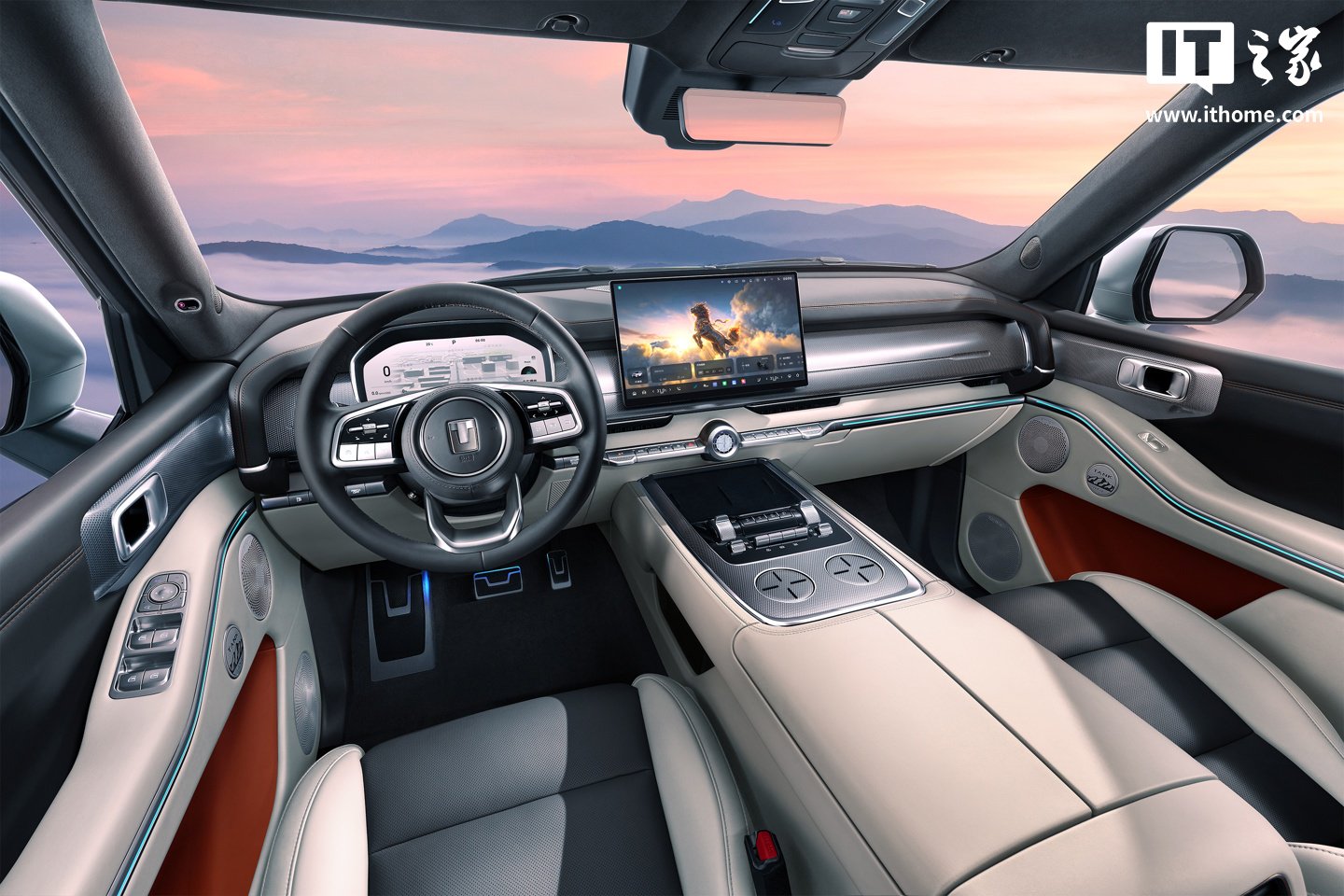 IT之家注意到,坦克 700 Hi4-Z 的内饰整体风格与坦克 700 Hi4-T 保持高度一致,配备三辐式多功能方向盘和悬浮式中控大屏。不过,新车在副仪表台区域进行了重新设计,取消了传统的换挡杆,改为怀挡式换挡机构,杯架布局也随之调整。此外,新车还新增了后排吸顶屏配置,进一步提升后排乘客的娱乐体验。
