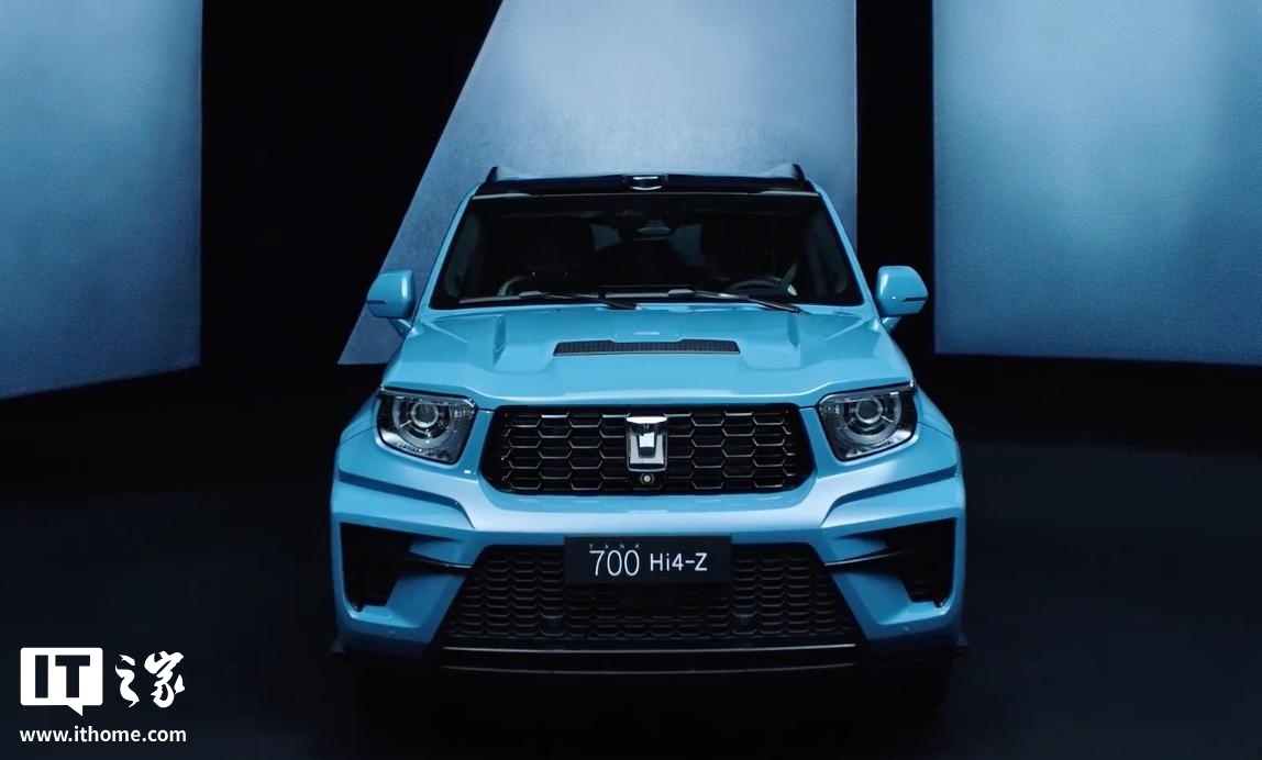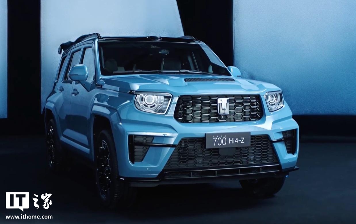 此前,坦克 700 Hi4-Z 的外观已经亮相。新车采用全新的“敦煌青”专属车色,前脸配备黑色蜂窝造型进气格栅,车顶位置提供激光雷达,预示着该车将具备高阶智能驾驶辅助能力。车尾设计有大尺寸尾翼,并配有“GWM TANK”品牌标识。根据申报信息,新车长宽高分别为 5105/2061/1985 毫米,轴距达到 3000 毫米,定位中大型 SUV。