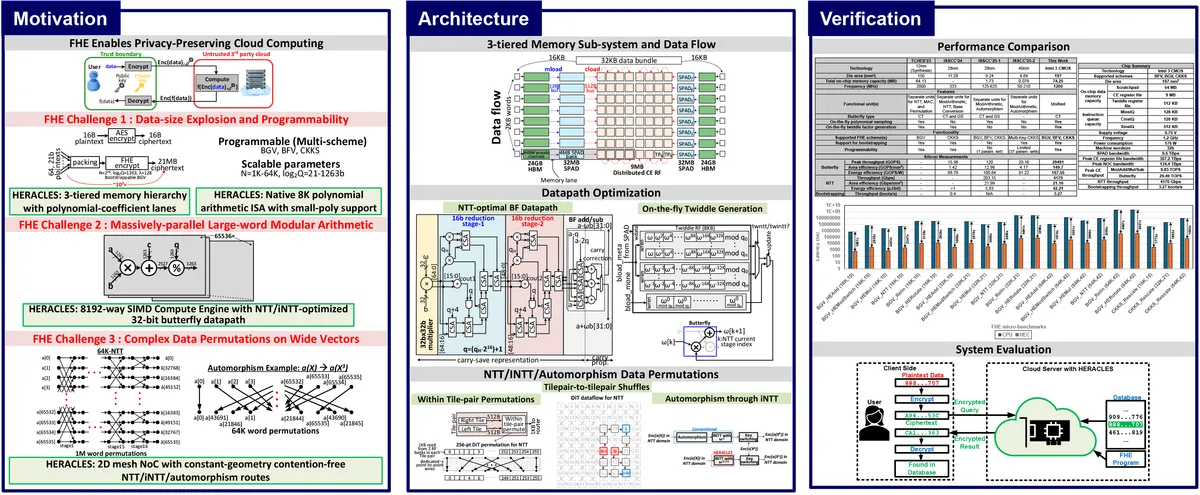 Heracles 并非通用的 x86 处理器,无法运行普通操作系统,而是针对 FHE 复杂的数学需求,彻底重构架构。
