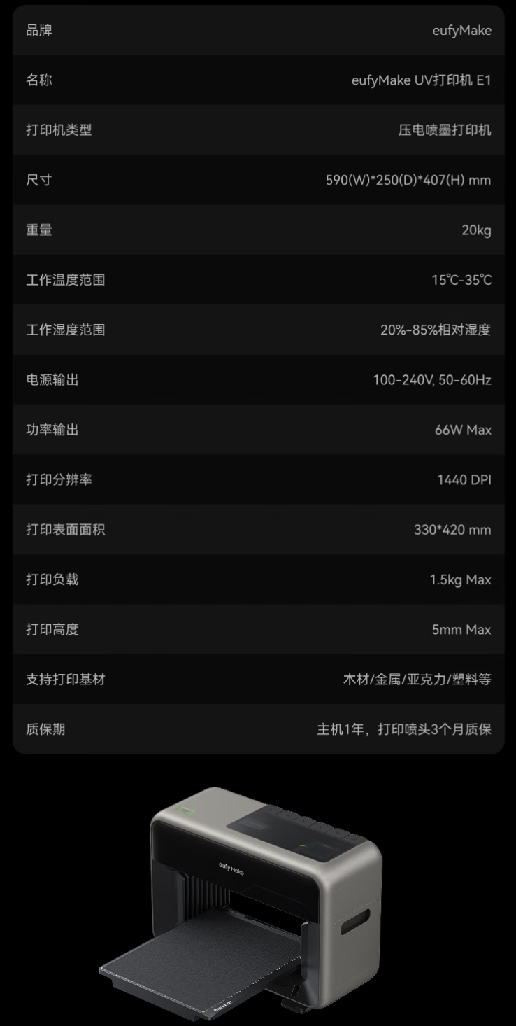IT之家 3 月 13 日消息,安克宣布旗下全球首款消费级立体纹理 UV 打印机 eufyMake E1 国行现已开启预售,定价为 13999 元,部分地区国补后低至 12599.1 元。