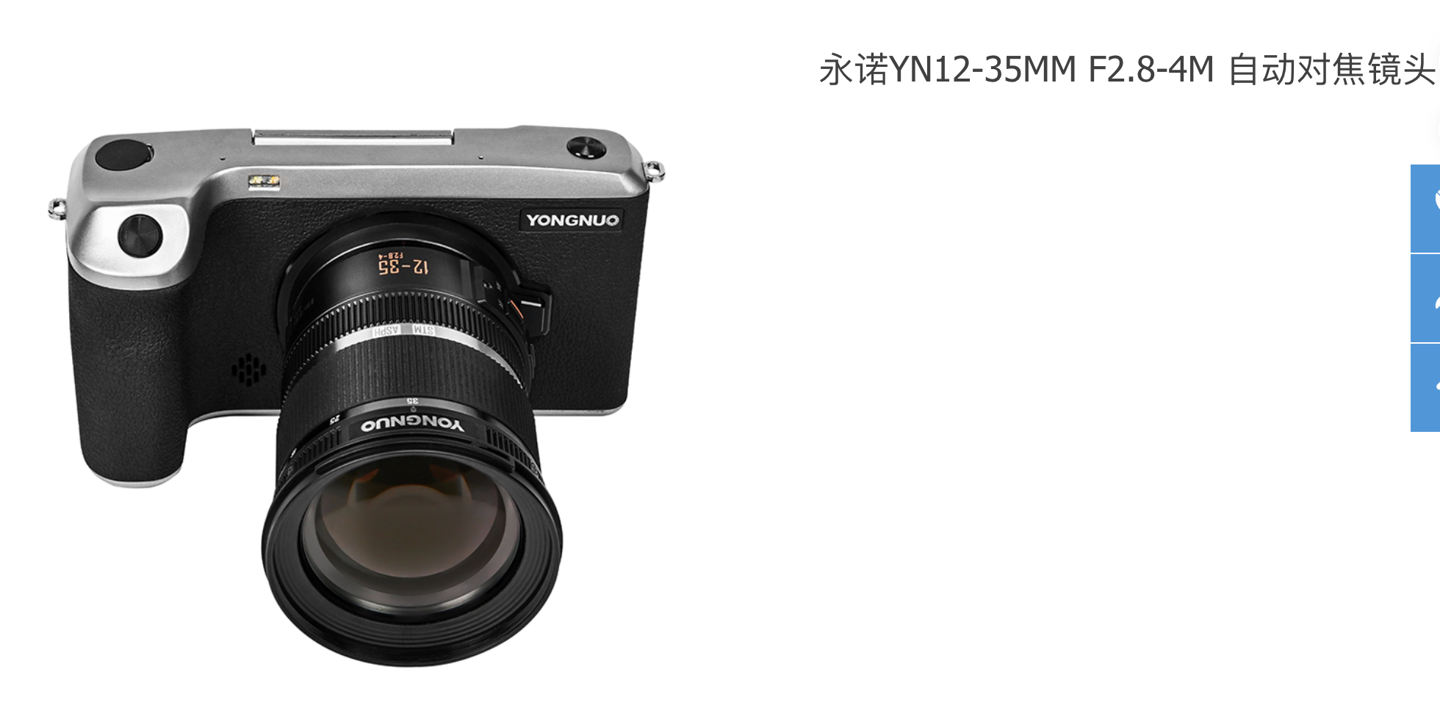 作为参考,第一支国产自动对焦变焦镜头是永诺 YN12-35mm F2.8-4M(IT之家注:2023 年发布),适配 M43 卡口,等效全画幅焦距约为 24-70mm,覆盖广角、标准和中长焦范围。采用内变焦、内调焦设计,最近对焦距离 11cm,光学结构则是 11 组 14 片。