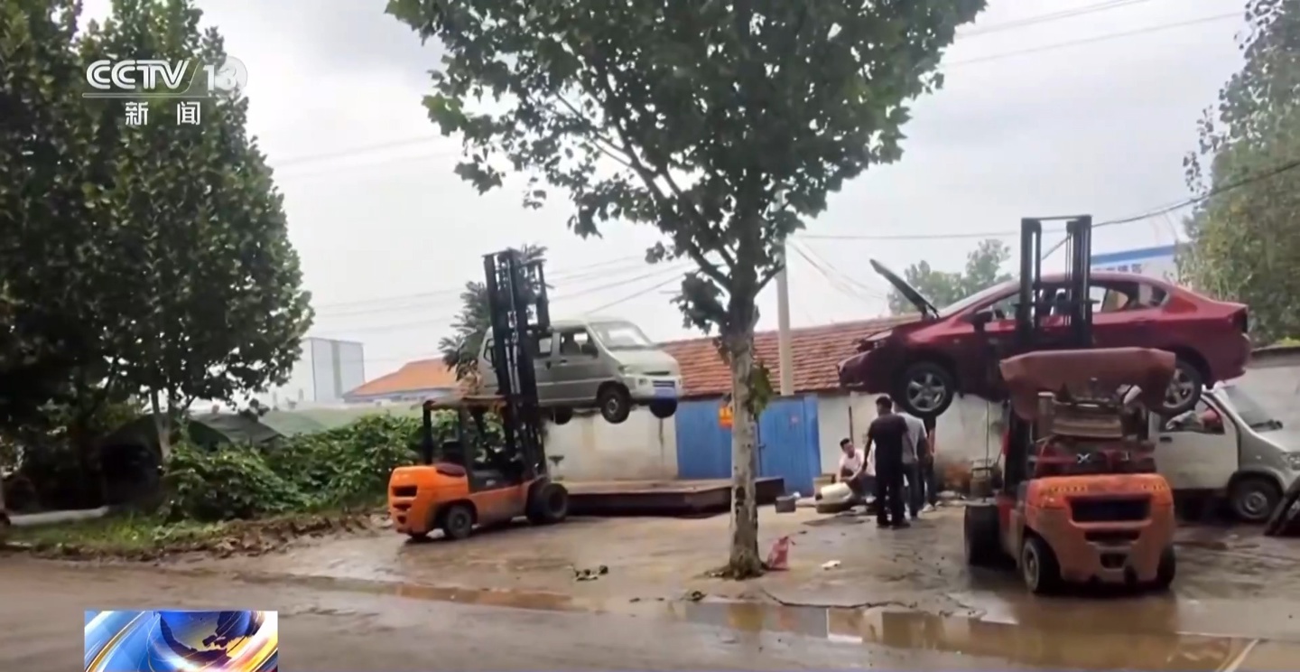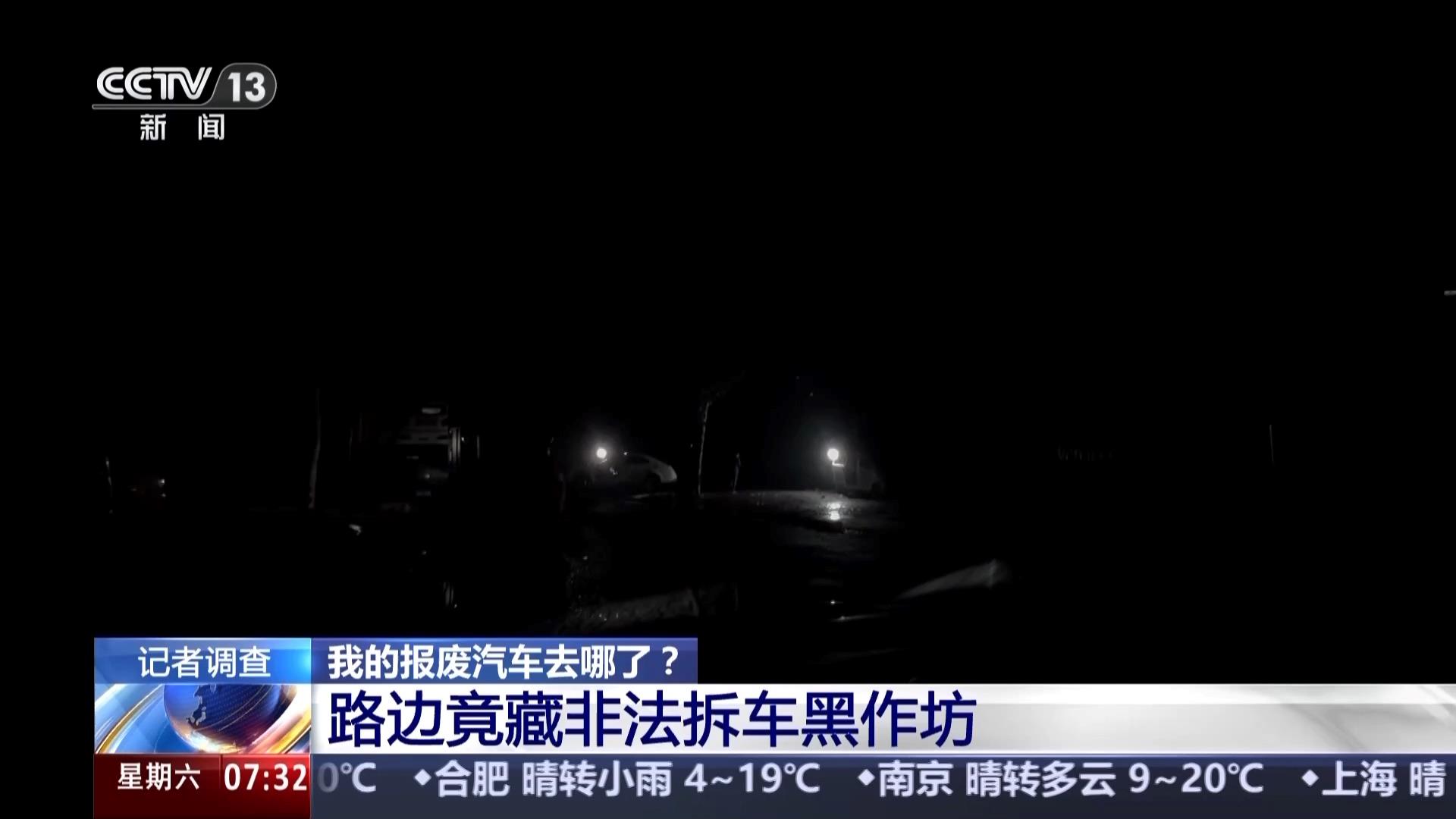 在日照莒县,央视记者使用红外热成像设备拍摄到深夜仍在作业的场景,工人正使用高温焊枪切割车底盘零件,有拖车陆续拉来报废车辆。第二天白天,拆车工作更加繁忙,叉车在村道上横冲直撞,报废车随意堆放在路边,工人将车门、车灯、蓄电池等高价值零件切割下来,现场废旧零件散落一地。