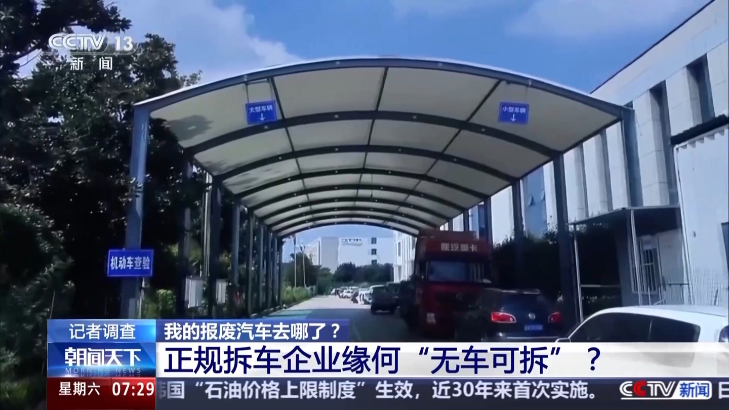 央视指出,我国每年有近 1000 万辆汽车达到报废标准,国家明确规定报废汽车必须交由正规拆解企业专业处理。然而记者调查发现,在临沂市,正规拆解企业陷入无车可拆的窘境。一家按照山东省最高标准建设、具备年拆解 5 万辆机动车能力的企业,厂区内崭新的拆解设备积满灰尘,处于断电状态,负责人表示每月还要倒贴租金和设备折旧费用。
