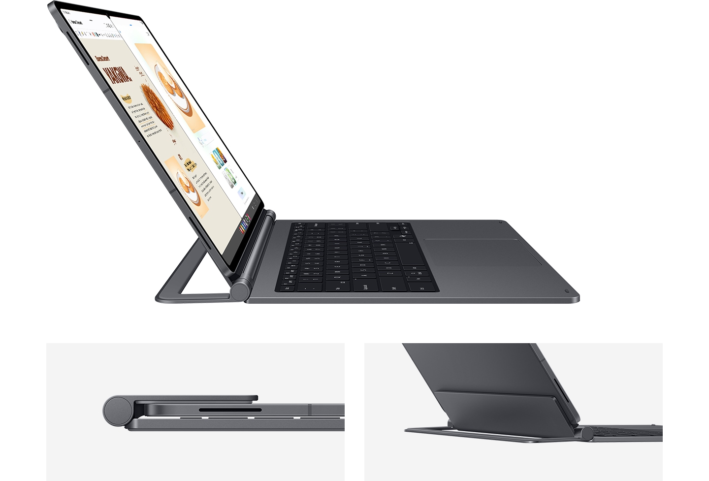 Galaxy Tab S11 Ultra Pro 键盘并未内置电池,而是通过 Pogo Pin 结构与平板电脑连接,可与平板电脑同步睡眠 / 唤醒。其配备高耐用性金属铰链,触控板面积较前一代增大了 14.6%。