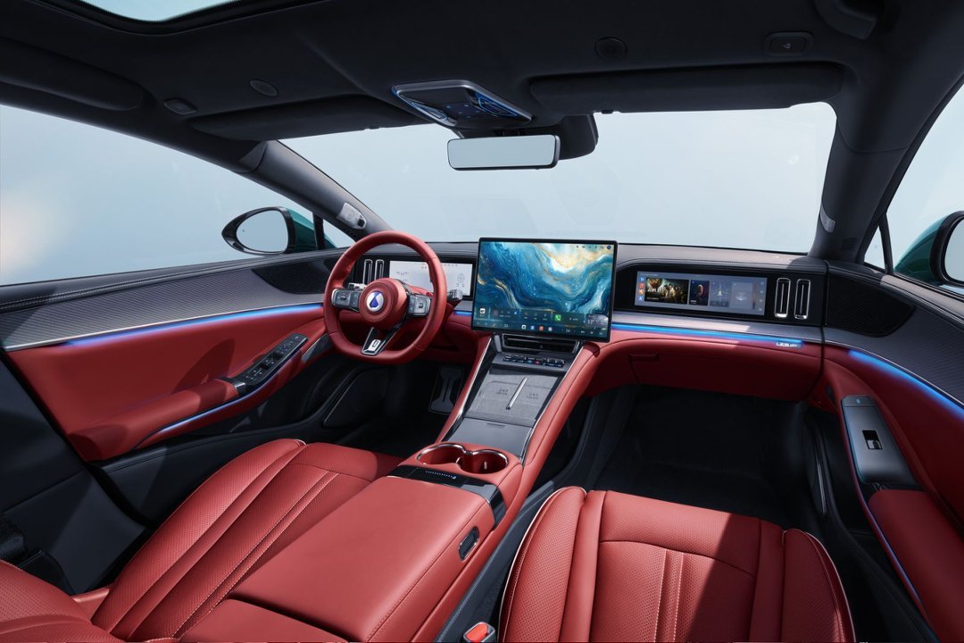 内饰方面,新车新增熔岩红配色,其设计灵感来自火山深处的岩浆。配置上标配原厂彩碳内饰套件、菱形绗缝一体式运动座椅、三幅式运动方向盘、BOOST 拨片及金属怀挡,还有副驾零重力座椅、宽适后排、流媒体外后视镜、智能冷暖冰箱、座椅磁吸生态及 AR-HUD 等配置。
