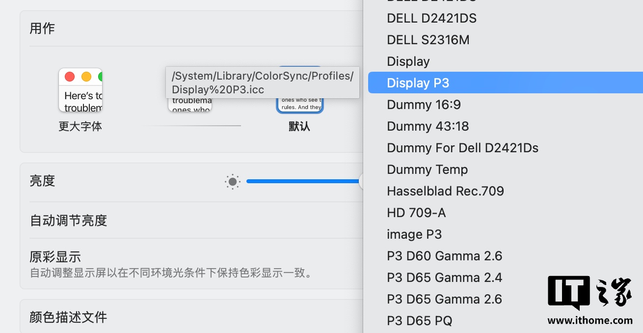 虽然苹果官方并没有提到这个功能,但启用该颜色描述文件后,屏幕会以 P3 色域显示图像,整体色彩更加鲜艳。
