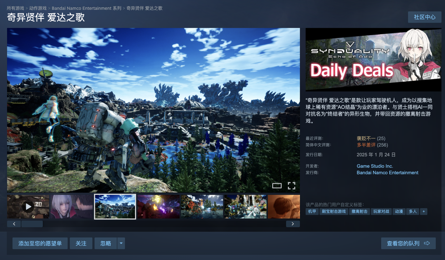 IT之家 3 月 16 日消息,万代南梦宫旗下机甲射击冒险游戏《奇异贤伴 爱达之歌》于去年 1 月 24 日发售,登录 PS5、Xbox Series X|S 和 Steam 平台,在 Steam 国区标准版售价 198 元起。而在上市 1 年后的今天,本作在 Steam 平台开启 0.5 折优惠,到手价低至 9.9 元。