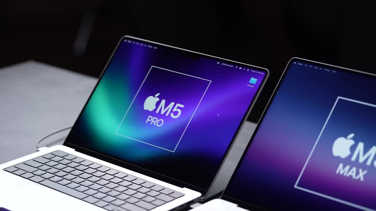 该频道对比 14 英寸 M5 Pro 与 16 英寸 M5 Max(18 核 CPU 和 40 核 GPU)的 MacBook Pro,在 Cinebench 2026 基准测试中,M5 Pro 得分为 7105 分,而 M5 Max 高达 9262 分,两者性能差距达到 30.35%。