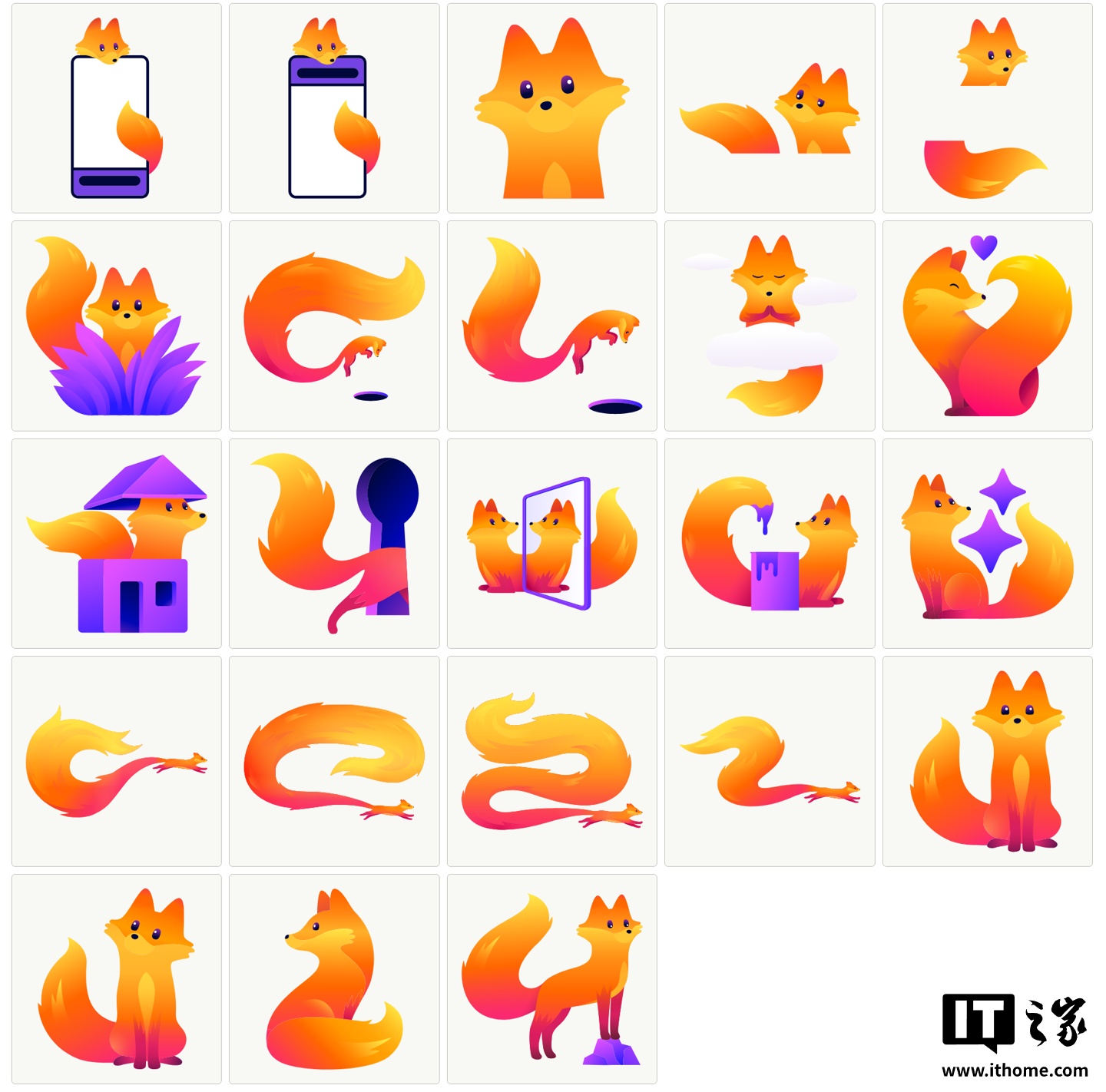 Kit 会出现在 Firefox 的首次安装引导页、新功能弹窗提示以及设置更改确认界面中。同时,该吉祥物也将全面覆盖 Firefox 的官方网站、博客及各大社交媒体平台。