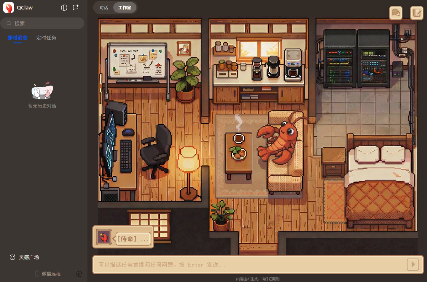 本次版本同步上线“灵感广场”。围绕办公提效、深度研究、娱乐游戏、自律生活等场景,预置常用任务,并自动加载对应 skills。