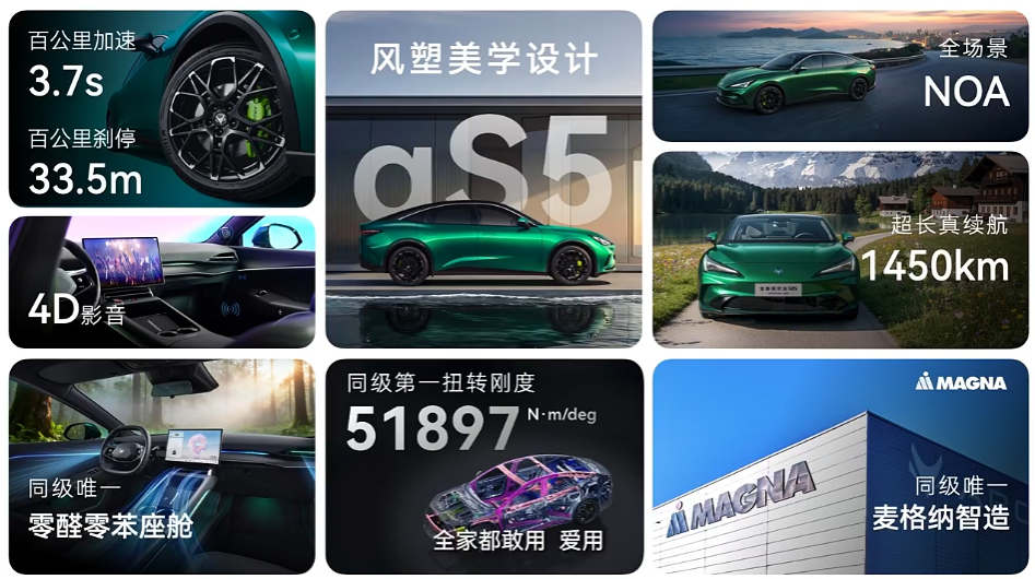 动力系统方面,全新阿尔法 S5 在延续现有纯电动力的同时,新增增程版车型。