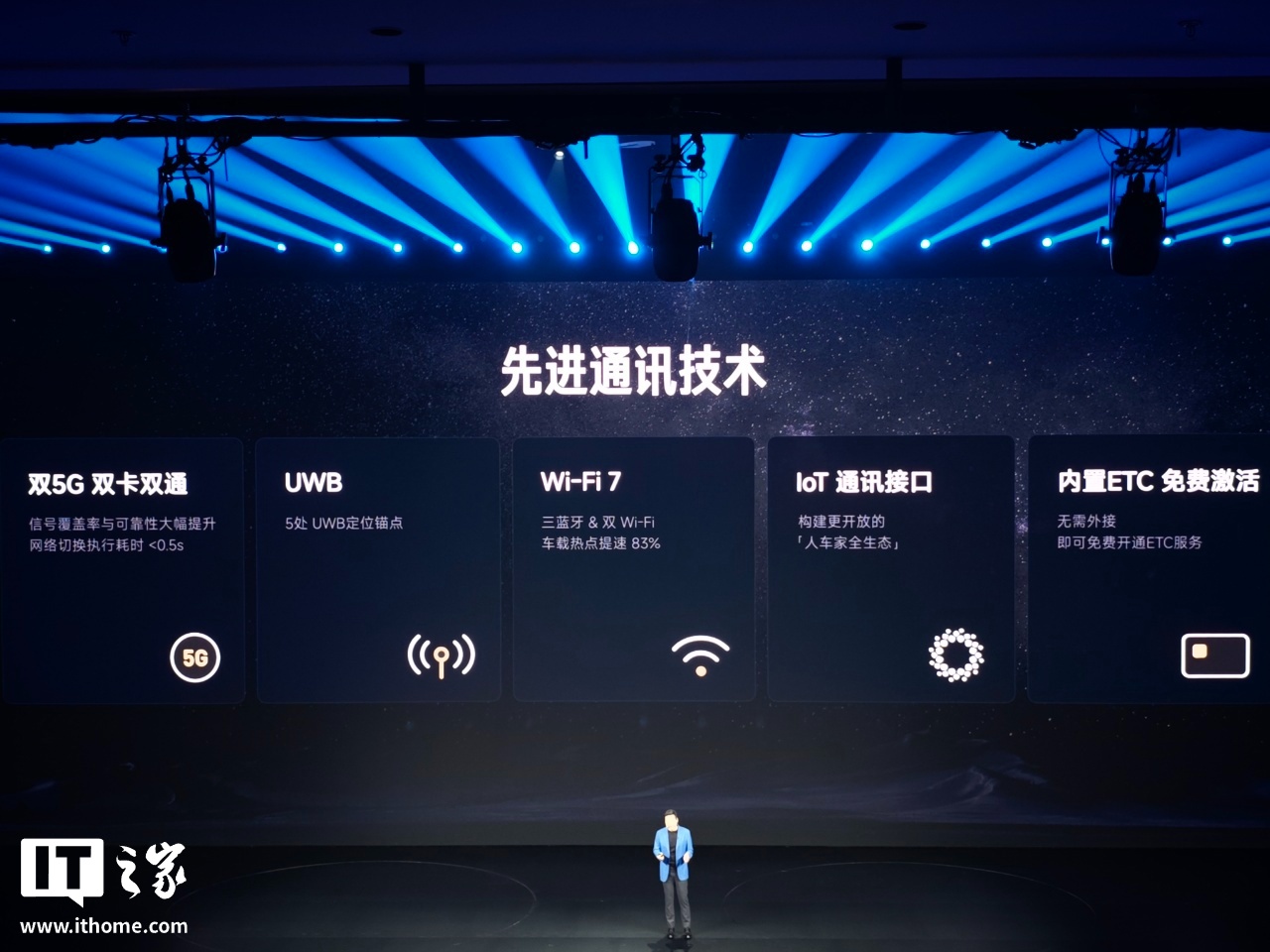 据介绍,新一代 SU7 还带来了更先进的通讯技术,包括双 5G 双卡双通、UWB 近场控车、Wi-Fi 7 上车、IoT 通讯接口、内置 ETC(免费激活)等。