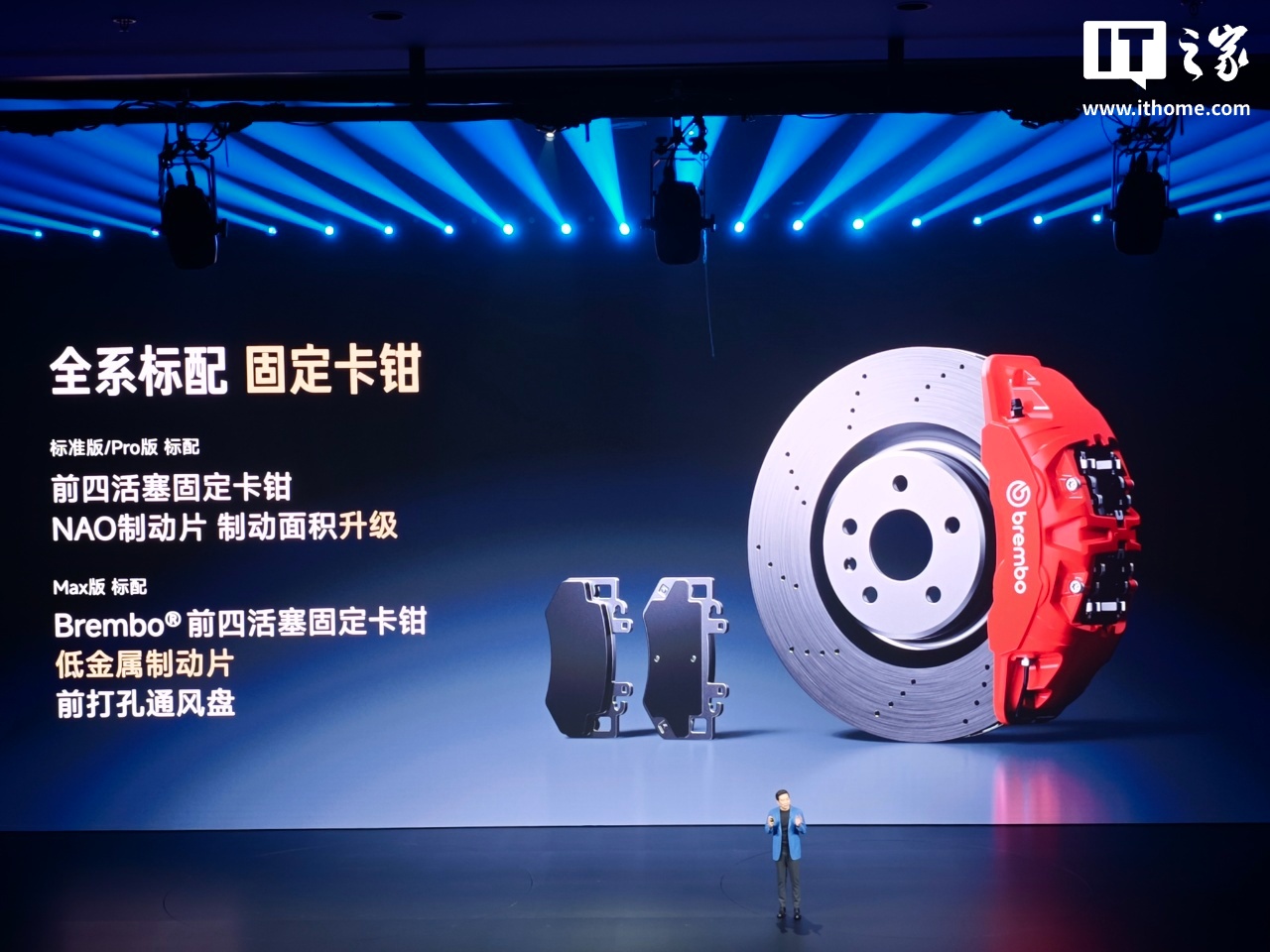 IT之家注意到,小米新一代 SU7 还搭载小米蛟龙底盘,全系升级 Ultra 制动踏板调校风格、全系标配固定卡钳、全系配备前双叉臂后五连杆独立悬架系统、全系标配 265mm 后宽胎,Pro / Max 版可选闭式双腔空气弹簧、CDC 阻尼可变减振器。