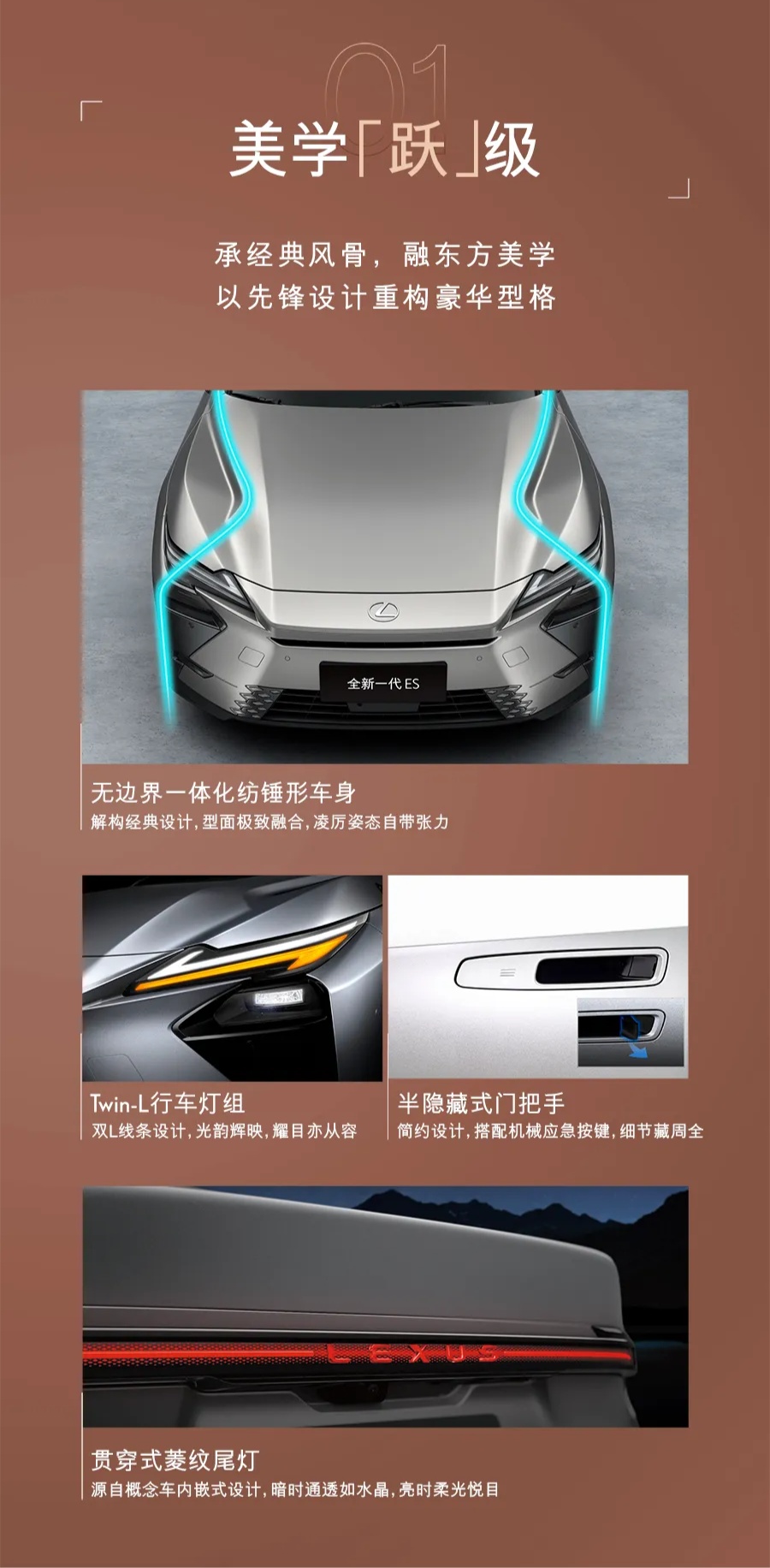 动力方面是本次换代的重点。全新 ES 将提供混动版 ES 300h 以及纯电版 ES 350e 和 ES 500e。