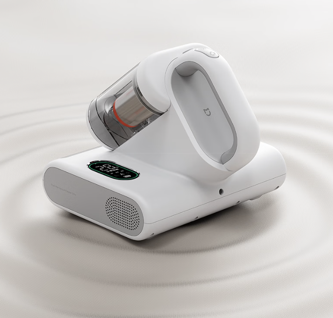 该产品采用无线设计 + 1.7kg 轻量化机身,使用米家经典白色风格,配备有 LED 数显屏可实时监测尘螨浓度。