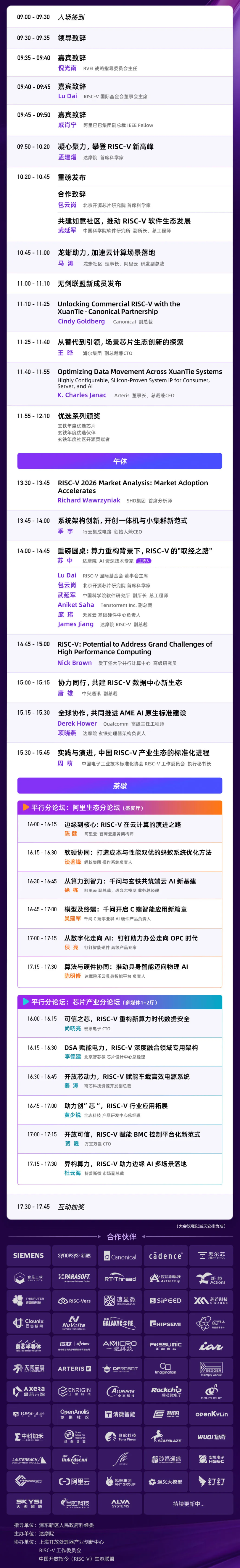 此次共设置 1 场主论坛和 2 场分论坛,将全景呈现 RISC-V 在 AI 大模型时代的技术跃迁与落地成果,探讨高性能架构未来、AI 行业场景落地、端 + 云融合及生态芯片产品趋势等核心议题。