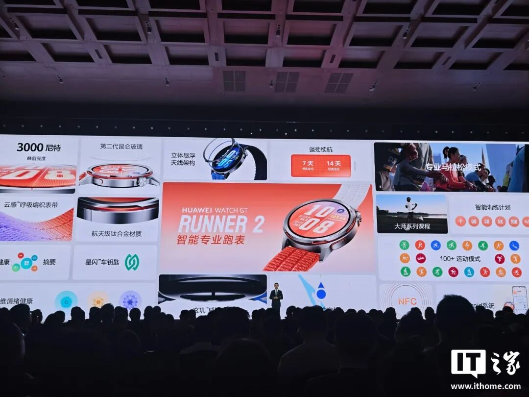 设计方面,WATCH GT Runner 2 重 34.5g、厚 10.7mm、双频全星座定位户外运动续航达 32 小时。
