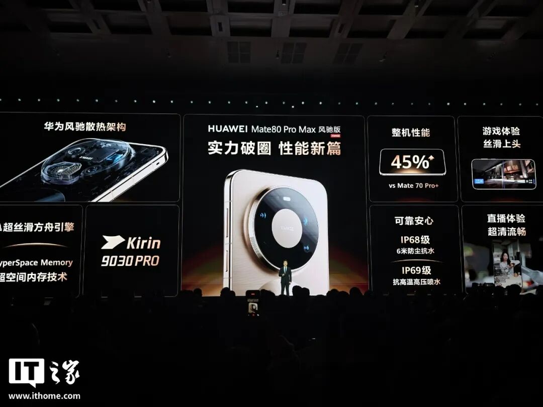 在今天的发布会中,第一个亮相的新品为华为 Mate 80 Pro Max 风驰版,号称“为极致性能而生”。