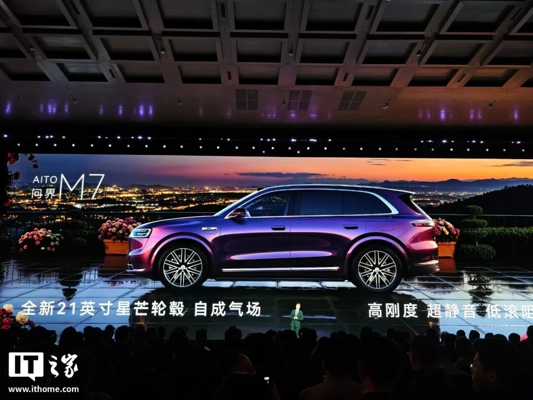 问界 M7 这边,新增夜紫车色、全新 21 英寸星芒轮毂和 896 线双光路图像级激光雷达,售价 30.98 万元起。