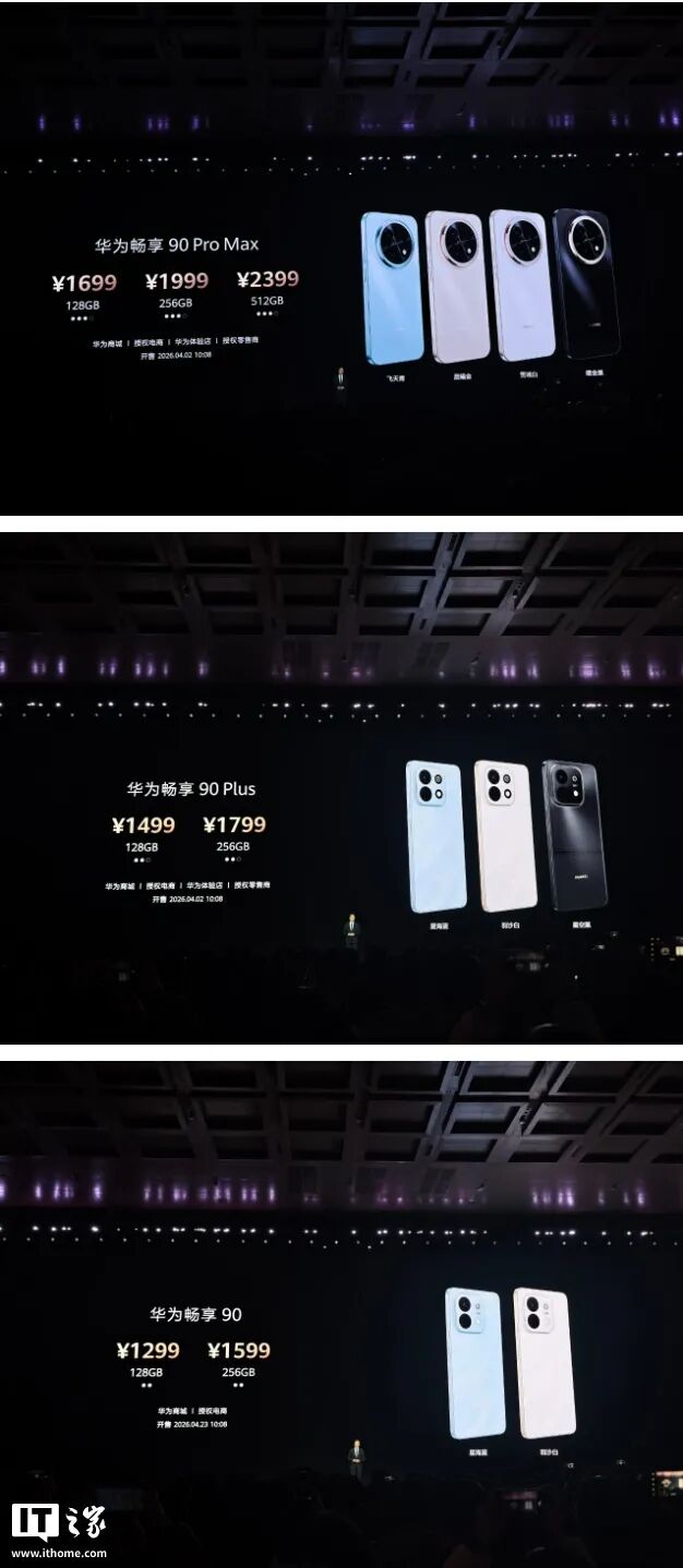 价格方面,畅享 90 Pro Max 给到 128GB、256GB、512GB 三个版本,售价依次为 1699 元、1999 元、2399 元。