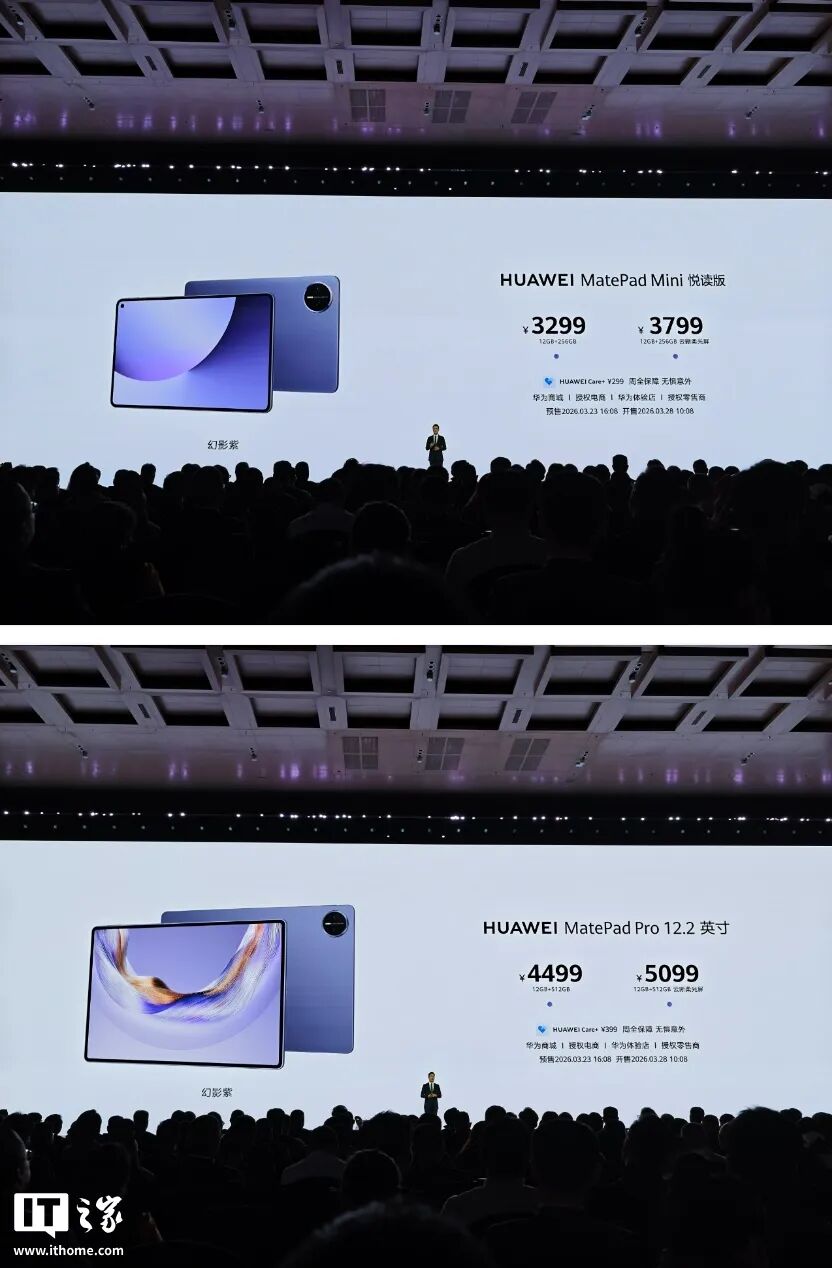 MatePad Mini 悦读版和 MatePad Pro 12.2 同步新增“幻影紫”配色。
