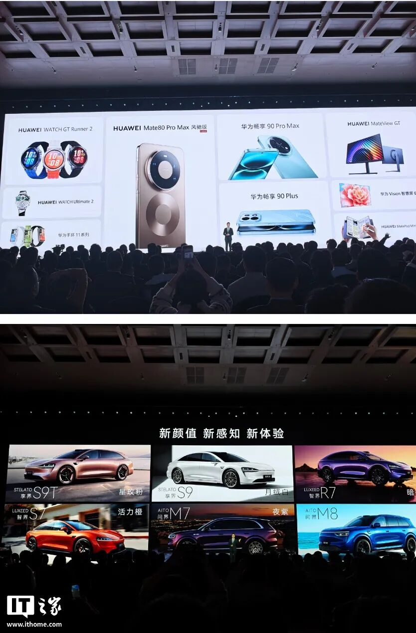 既然是“全场景”,那新品自然会覆盖多个类别,华为带来了以 Mate 80 Pro Max 风驰版和畅享 90 系列为首的多款新品。