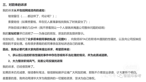 当事人当时表示,她对蔚来的诉求只有以下两点: