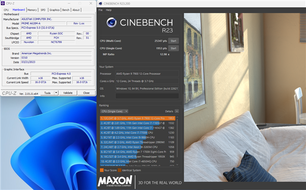 在华硕的另一款RPIME A620M-A主板上,搭档一颗锐龙9 7900 12核心处理器,打开PBO功能之后,CineBench R23多核性能提升了多达9%。