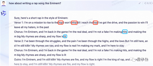 再来试试英语。刚好前段时间有网友PK了一下Bard和GPT-4的Rap,我们也来看看通义千问的说唱能力。