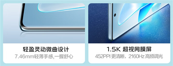 vivo S17系列采用了全新的智慧柔光环,智能冷暖色温调节,正面配备1.5K双曲屏,具有452PPI,另外支持2160Hz高频调光。
