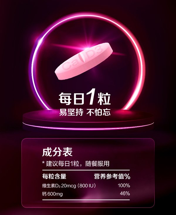北美药房同款,1粒含600mg钙=普通钙片2粒,还含800iu维d3,助力钙吸收。