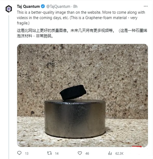 随后,一家美国公司也宣称发现了室温超导体,并且已经获得相关专利。这个位于美国佛罗里达州的 Taj Quantum 公司发布公告称,该公司已经获得了一项关于室温超导材料的重要专利,这可能意味着该材料将进入生产阶段。