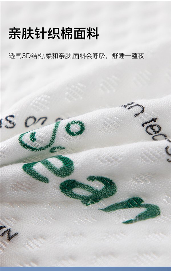 亲肤针织棉面料,透气3D结构,柔和亲肤,面料会呼吸。经1000次水洗试验,不易变形。