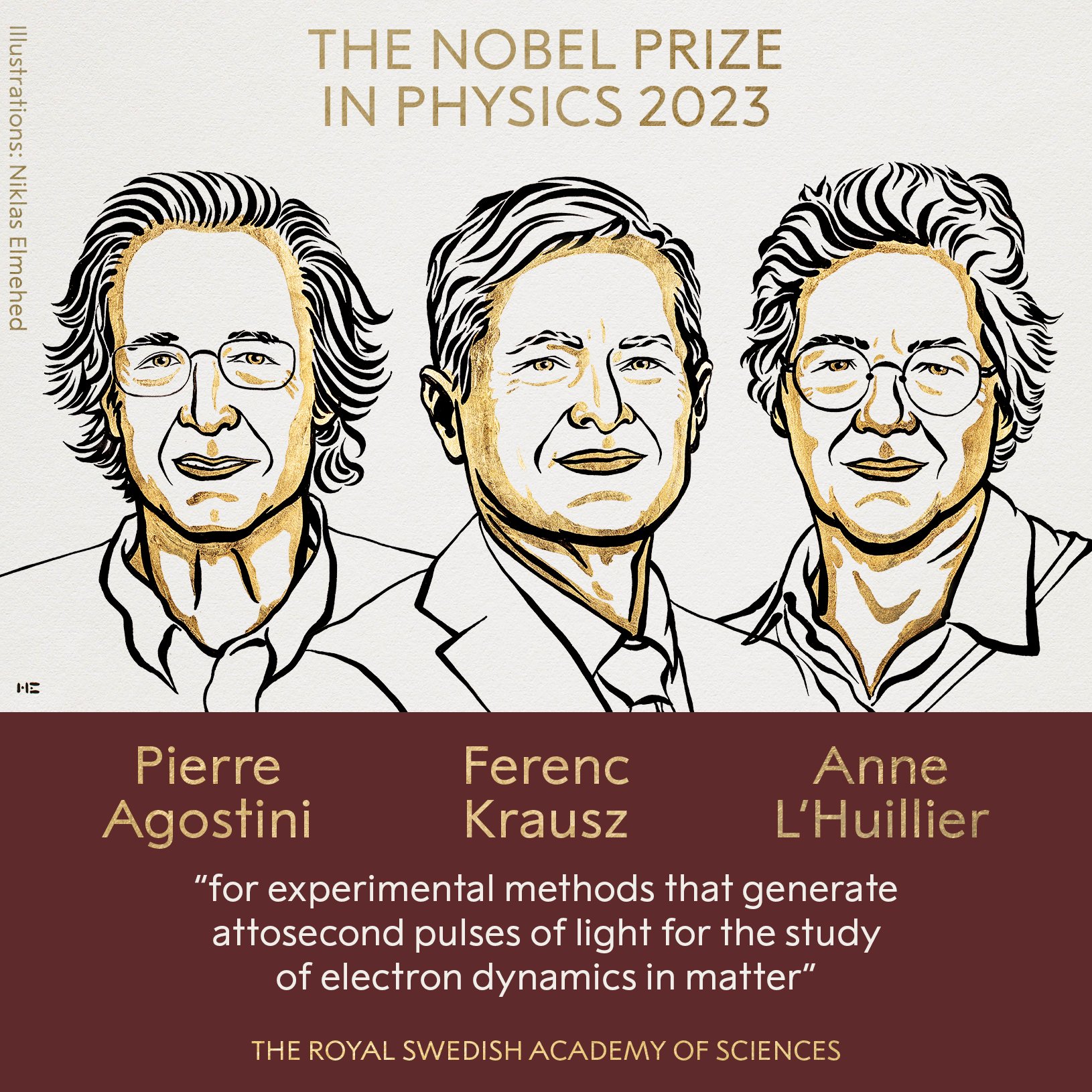 北京时间3日17时50分许,瑞典皇家科学院宣布,将2023年诺贝尔物理学奖授予发明了这种极短闪光技术的三名科学家——美国俄亥俄州立大学名誉教授皮埃尔·阿戈斯蒂尼(Pierre Agostini)、德国马克斯·普朗克量子光学研究所教授费伦茨·克劳斯(Ferenc Krausz)和瑞典隆德大学教授安妮·勒惠利尔(Anne L’Huillier),以表彰他们在“产生阿秒光脉冲以研究物质中电子动力学的实验方法”方面所做出的贡献。
