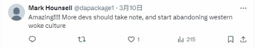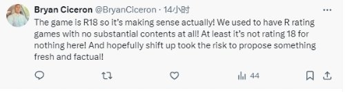 广大玩家除了表示“冲爆”之外,也有人认真讨论这套服装极其背后所代表的迹象,博主Rino就发文询问玩家们对此的看法,不少人都认为这是游戏界对西方游戏界政治正确的一次回击,纷纷表示,这游戏是R18分级,开发者也清楚它的受众,所以尺度大也没啥问题。