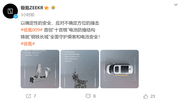 快科技3月22日消息,极氪汽车官方今日发文称,极氪009首创“十宫格”电池防撞结构,可全面守护电池安全。